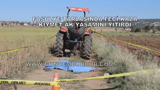 Burdur’un Halıcılar Köyü’nde oturan Kıymet Ak (31) bugün sabah saatlerinde Günalan Ovası Mevrüzü mevkiindeki fasulye tarlasındaki damlama sulama sistemlerini traktörünün arkasındaki şaft yardımı ile toplamaya başladı.