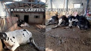 Elektrik çarpan 6 inek telef oldu. Zararın yaklaşık 60 Bin Tl olduğu öğrenildi.