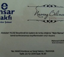 Ensar Vakfı Burdur Şubesi tarafından “Niçin Namaz”, “Namaz Bilinci” Konfransı düzenlendi.