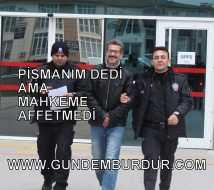 ‘Burdur Ağır ceza Mahkemesindeki karar duruşmasında tutuklu sanık Ferdi İmik “müştekiyi bıçakla yaraladım. Öldürmek isteseydim öldürürdüm. Amacım yaralamaktı. Telefonunu zorla elinden aldım. Arabasının da lastiğini patlattım. Aslında amacım arabayı havaya uçurmaktı. Pişmanım. Takdir mahkemenin” dedi.