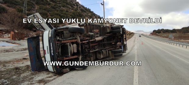 İstanbul’dan Antalya’ya ev eşyası götüren Doğan E.(46) yönetimindeki 34 DP 9433 Plakalı kamyonet Burdur-Antalya Karayolu Çeltikçi Beli mevkiinde sürücünün direksiyon hakimiyetini kaybetmesi sonucu yan yatarak sürüklendi.
