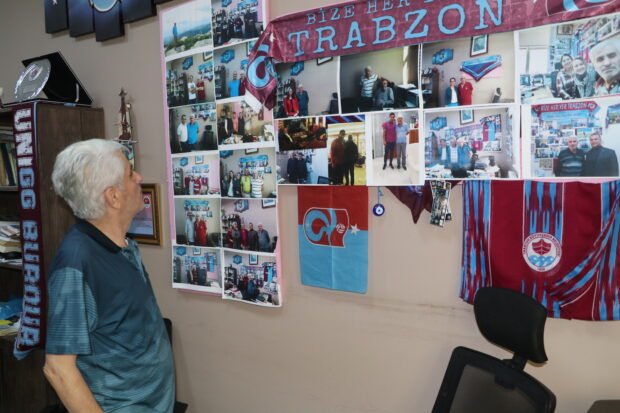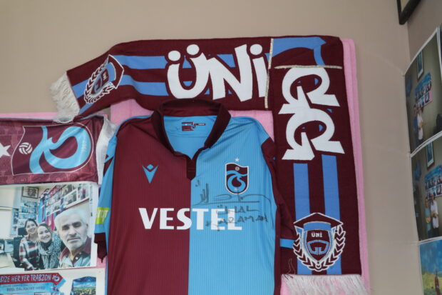 BURDUR Mehmet Akif Ersoy Üniversitesi Eğitim Fakültesi Öğretim Üyesi Prof. Dr. Hasan Genç’in odası Trabzonspor forması ve bordo mavi malzemelerle dolu.