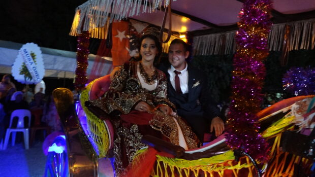 Burdur’da Fatih Patlar-Hülya İşcan çifti nostalji yaparak Bağlar Mahallesi’nde düzenlenen Kına Gecesi törenine faytonla geldi.