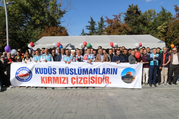 Memur Sen Şube Başkanı Murat Bulut’da “Memur Sen olarak bir aydır Filistin’de devam eden soykırım ve zalim İsrail ile onun destekçilerinin şehit ettiği müslüman kardeşlerimiz için bugüne kadar değişik etkinlikler düzenledik” dedi.