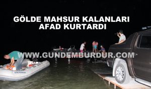 Burdur’da tekne ile göle açılan ve teknenin arıza yapması sonucu gölde mahsur kalan iki kişiyi Afad ekipleri kurtardı.