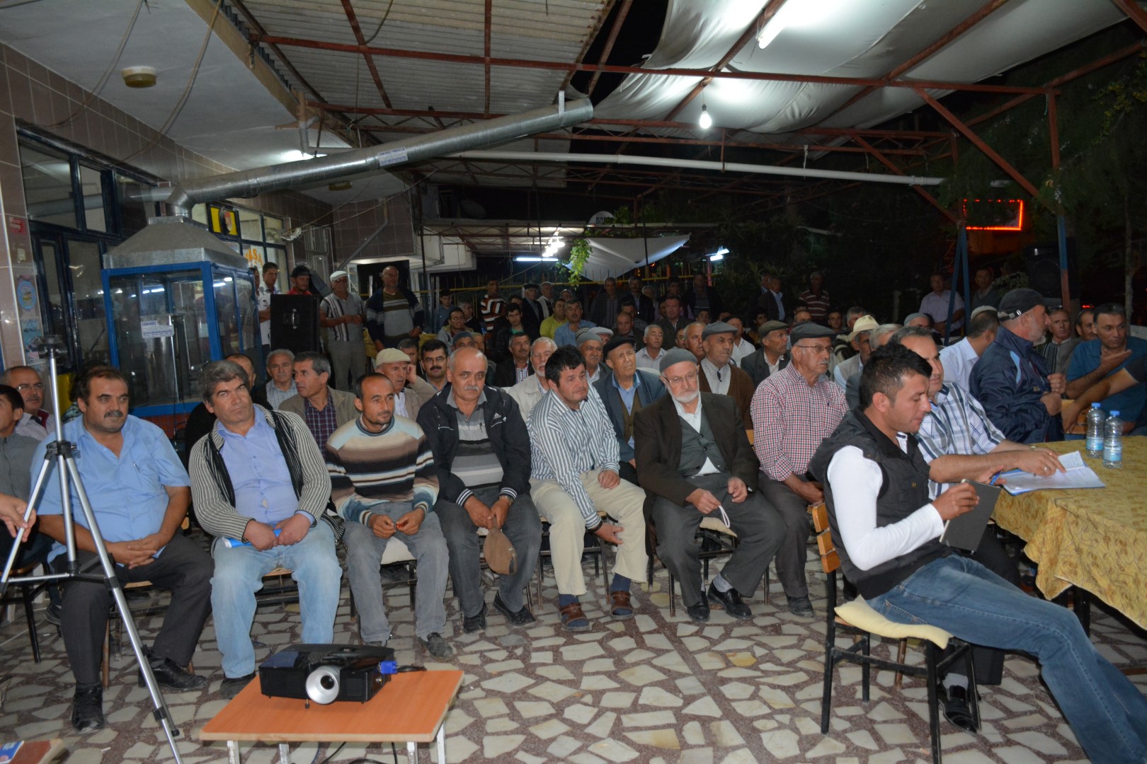 Toplantıda İl Genel Meclis Üyesi Muzaffer Bağcı arazi toplulaştırması ve kapalı sulama sistemi hakkında vatandaşları bilgilendirdi.