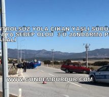 Burdur’un Gölhisar İlçesi Yusufça Beldesi’nde sabah saatlerinde 79 yaşındaki Mehmet U.’ın kullandığı 20 YAA 992 Plakalı otomobil Gölhisar-Acıpayam yoluna kontrolsüz bir şekilde çıkınca Devriye görevindeki Jandarma ekip otosu ile çarpıştı. Kazada 3 Jandarma personeli ile otomobil sürücüsü Mehmet Ural yaralandı.