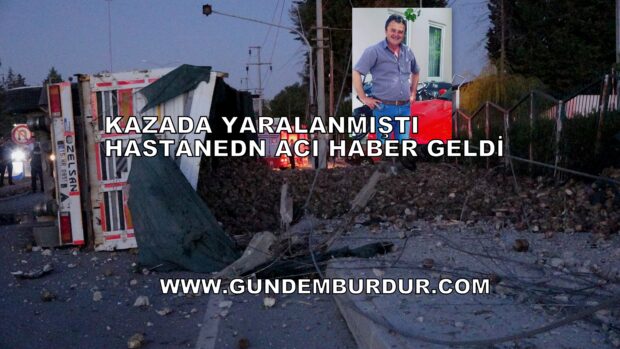 Görenlerin haber vermesi üzerine olay yerine sağlık, itfaiye ve polis ekipleri sevk edildi. Kazada yaralanan tır sürücüsü Ahmet Dikici, ambulansla Burdur Devlet Hastanesi’e görütülerek tedaviye alındı. Tedavisine Cerrahi Yoğun Bakım servisinde devame dilen ahmet Dikici dün akşam 21.00 sıralarında yaşamını yitirdi.