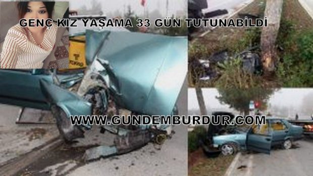 BURDUR’da 26 Kasım’da meydana gelen trafik kazasında ağır yaralanan genç kız dün akşam üzeri yaşamını yitirdi.