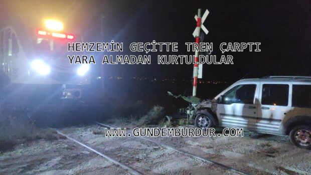 BURDUR’da yolcu treninin çarptığı hafif ticari araçtaki 3 kişi yara almadan kurtuldu.