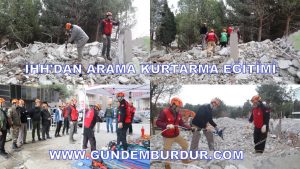 İHH Burdur, Isparta ve Antalya Şubesi arama kurtarma ekiplerinin katıldığı ve iki gün süren eğitimin ilk gününde İHH Arama Kurtarma ekibi Antalya Bölge sorumlusu Ali Uygur tarafından öğretmenevinde teorik eğitim verildi. İkinci gün ise Makü Merkez Yerleşkesi’nde yıkımı devam etmekte olan KYK Kız Yurdu enkazında arama kurtarma ve enkazdan yaralı kurtarma eğitimleri verildi. Enkazda kullanılan teçhizat hakkında bilgilendirme yapıldı.