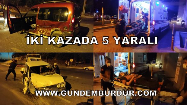 BURDUR’da meydana gelen iki trafik kazasında beş kişi yaralandı.