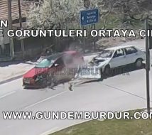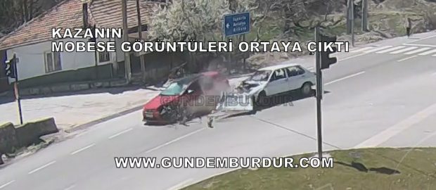 BURDUR’da Manastır Kavşağında çarpışan iki otomobildeki sürücülerin yaralandığı kazanın mobese görüntüleri ortaya çıktı.