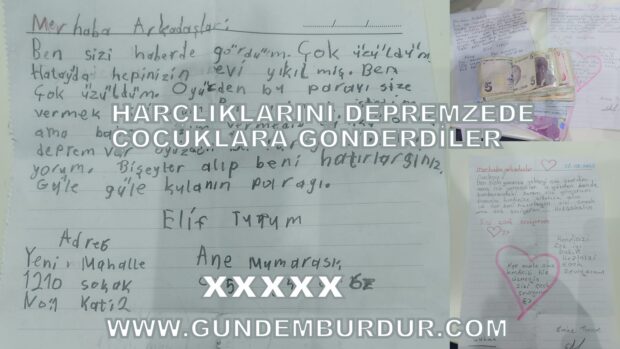 Burdur’un Bucak ilçesinde yaşayan ortaokul öğrencisi Emine (12) ve ilkokul öğrencisi kardeşi Elif Tutum (9) kardeşler biriktirdikleri harçlıklarını Hatay’da görev alacak bir yakınları vasıtasıyla depremzede öğrencilere gönderdiler.