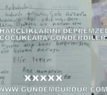 Abla Emine ise Merhaba arkadaşlar, nasılsınız. Ben sizin yanınıza gelmeyi çok isterdim ama izin vermediler. O yüzden ben de kumbaramdaki paramı size yolluyorum. Bununla kendinize çikolata alın ve beni hatırlayın. Sizi çok ama çok seviyorum. Hep mutlu olun. Kendinizi üzmeyin. Kendinize çok iyi bakın. Hepinizi çok seviyorum. Hoşçakalın” yazdı.