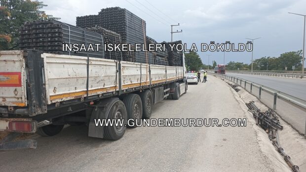 Burdur’un Bucak ilçesinden aldığı inşaat iskelelerini Ankara’ya götüren Ali İ. yönetimindeki 43 AHO 288 plakalı tırdaki inşaat iskelelerinden bir kısmı Burdur-Ankara Karaylu Askeriye Köyü yakınlarında yola düştü. İskelelerin düştüğünü fark eden şoför tırı yan yola çekti.
