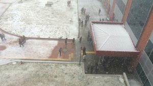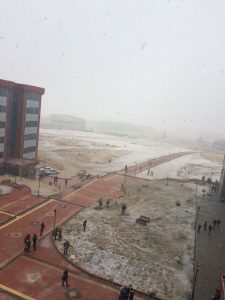 Kent merkezinde 7 Kilometre uzaklıktaki yerleşkede saat 14.00 sıralarında başlayan kar yağışı yerleşkeyi beyaza bürüdü.