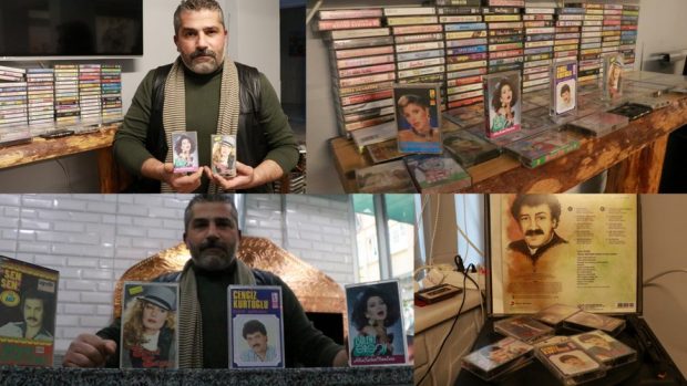 İşyerinde 200’ün üzerinde kaset bulunan Mehmet Sönmez Karabey “bu kaset biriktirme sevdam babamdan kalma. Babamın başlattığı koleksiyonu ben devam ettiriyorum. Burada 200’ün üzerinde 40-45 yıllık kaset var” dedi.