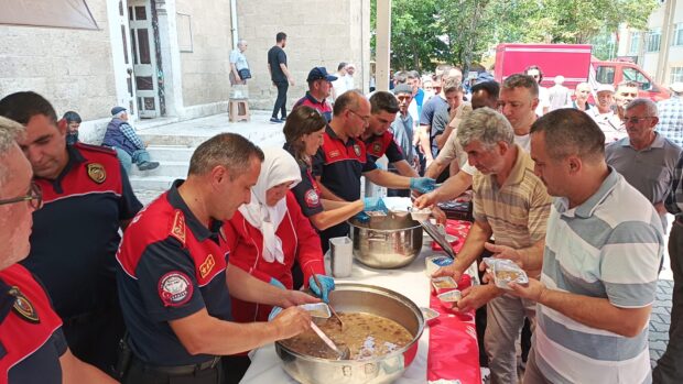 Ballak, “İtfaiye müdürlüğümüz tarafından Muharrem ayı ve başta görevi başında şehit olan itfaiyeciler olmak üzere ebediyete irtihal etmiş tüm itfaiyeciler hayrına ulu camide cuma namazı çıkışı aşure ikramımız oldu. Allah kabul etsin” dedi.