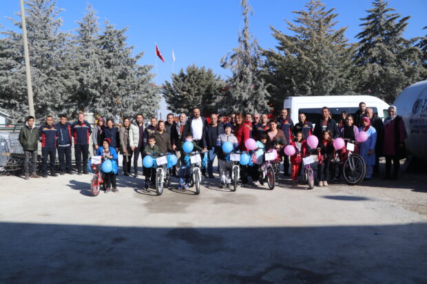Belediyeye ait araçla Organize Sanayi Bölgesi’ndeki işyerine gelen çocuklar ve ailelerine önce öğle yemeği ikram edildi. Daha sonra bisikletleri teslim edildi.