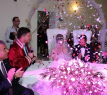 Ramazan Kerim Özkan Nikah Cüzdanını Gonca Gönülaçar’a verirken, Belediye Başkanı Ali Orkun Ercengiz’de genç çifte “Bakabileceğiniz kadar çocuk sahibi olun ama öncelikle Vatanını, Milletini seven Atatürkçü çocuklar yetiştirin.” dedi.