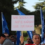 Memurların 9 aydır, toplu sözleşme görüşmelerinde uğradığı ihanetin bedelini ödüyorlar diyen Orhan Akın “Bilindiği gibi iktidar ve malum konfederasyon iş birliği ile memurlar 123 TL, emekliler ise 140 TL zamma mahkûm edildiler. 2014 ve 2015 yılı maaş zamlarının belirlendiği toplu sözleşme görüşmelerinde sözde yetkili konfederasyon, memurları masada yüzüstü bıraktı. Kanuna göre 30 gün sürmesi gereken toplu sözleşme süreci 7 günde, 2 toplantı sonunda anlaşmayla sonuçlandırıldı. Toplu sözleşme sonunda kamu görevlilerinin hakkı olan enflasyon farkı ödemesi gasp edildi, yok sayıldı; memurlar kaderine terk edildi. Bütçede memurlara ayrılan kaynağın 2,97 milyar TL’si Hükümete peşkeş çekildi ve masada bırakıldı.” Dedi.