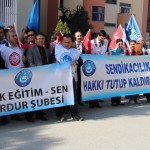Kamu Sen Burdur Şubesi üyeleri Ek zam talebi ile Burdur Defterdarlığı önünde eylem yaptı.