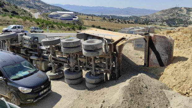 Burdur-Büğdüz Karayolu üzerinde Devlet Su İşleri Genel Müdürlüğü tarafından yaptırılan Burdur İçme Suyu Arıtma Tesisi İnşaatına toprak malzeme boşaltacak olan Utkan Ç.’nin kullandığı 15 NL 969 Plakalı damperli kamyon toprak malzemeyei boşalttığı sırada bir anda yan yattı.
