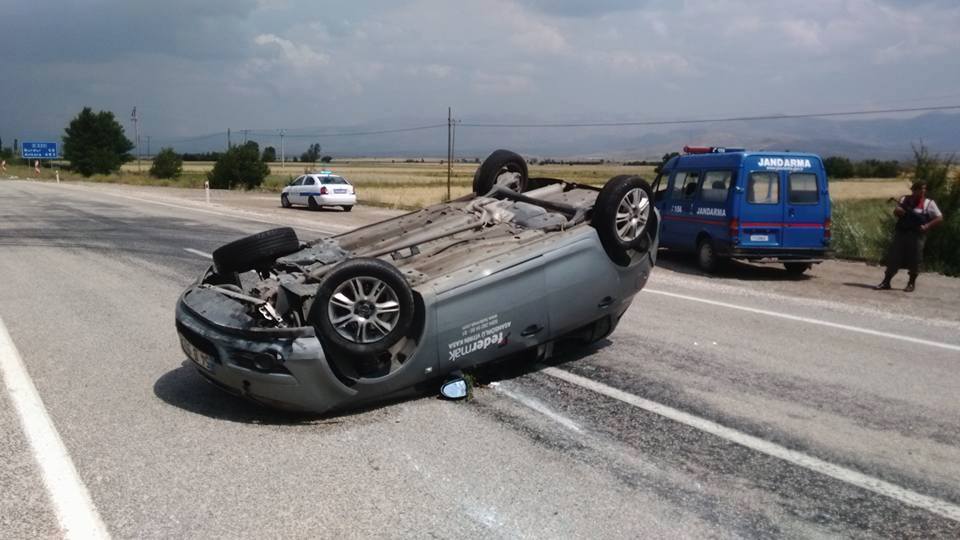 Fethiye’den Burdur’a giden Dursun Ali Taş’ın kullandığı 54 B 0102 plakalı otomobil, Karamanlı ilçesi çıkışında, sürücüsünün direksiyon hakimiyetini kaybetmesiyle orta refüje çarparak takla attı.