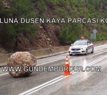 dağdan kopan büyük bir kaya parçası Isparta-Antalya Karayoluna düştü.