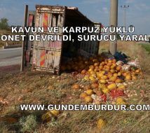 Burdur’da Kavun ve Karpuz yüklü kamyonetin devrilmesi sonucu sürücü yaralandı.