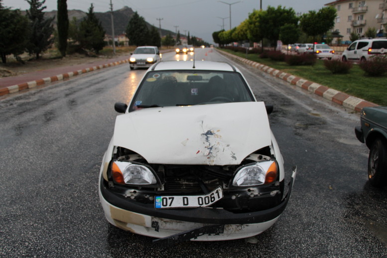Tefenni istikametinden Şehir Merkezi istikametine gelen Nuri Göktaş’ın kullandığı ve sola dönüş yapmak isteyen 15 AF 087 Plakalı araca aynı yönden gelen Hüseyin Kaya’nın kullandığı 07 D 0061 Plakalı araç çarptı. Çarpmanın etkisiyle savrulan 15 AF 087 Plâkalı araç kavşak içerisinde bekleyen Levent Esen’in kullandığı arca çarptı. Araç sürücüleri kazadan yara almadan kurtulurken 07 D 0061 PLakalı araç seyir halindeki kamyonun altında kalmaktan sürücüsünün dikkati soğukkanlılığı sayesinde kurtuldu. Kazaya karışan araçlar kurtarıcılarla otoparka çekildi.