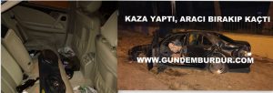 Bugün akşam saatlerinde Burdur-Tefenni Karayolu Buryem önünde meydana gelen tek taraflı trafik kazasında sürücü aracı akza yerinde bırakıp kaçtı.