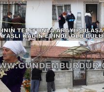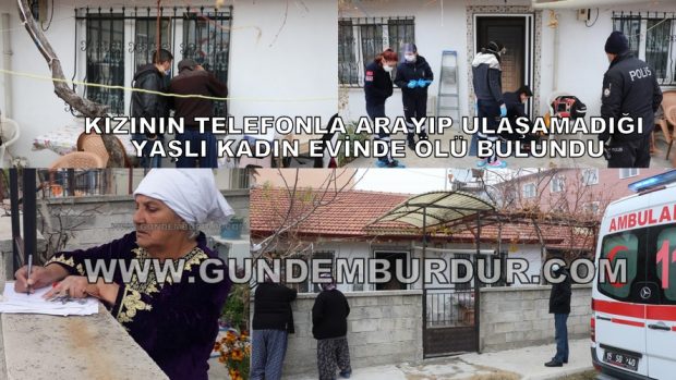 Burdur merkez Cemil Mahallesi Ağıl Sokaktaki müstakil yalnız yaşayan Tasvire K.’e dün akşamdan bu yana telefonla ulaşamayan Fransada yaşayan kızı komşularından yardım istedi. Komşusu Tasvire K.’in telefonu cevap vermeyince evine gidip kapıyı ve pencereyi çaldı. Pencereden içeri bakan komşu kadın yatağında yatar vaziyette görünce Sağlık ve Polis ekiplerine haber verdi.