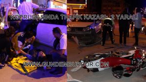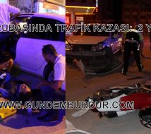 Çatalpınar Kavşağından Müze istikametine seyretmekte olan H.Ö.’nün kullandığı motosiklet, T.O’nun kullandığı özel otomobil ile köprübaşı kavşağında çarpıştı. Kazada motor sürücüsü ile otomobil sürücüsü yaralandı. Yaralılar ambulanslarla Burdur Devlet Hastanesi