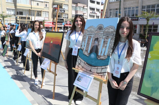 BURDUR merkez 15 Temmuz Şehitler Anadolu Lisesi öğrencileri Cumhuriyet Meydanı’nda resim sergisi açtı.
