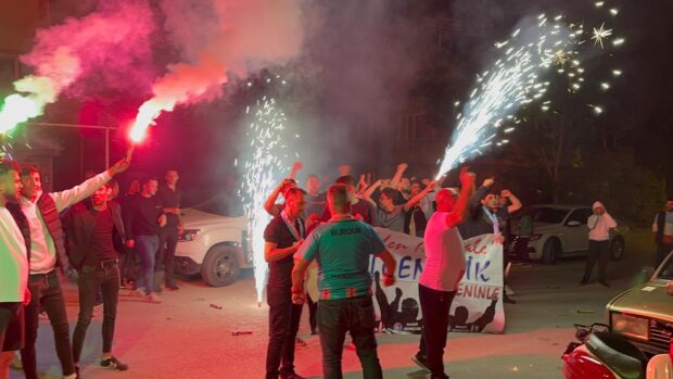 Maküspor kaptanı Halim Demirok ise ” geldiğiniz için teşekkür ederiz. Hepimiz çok mutlu olduk. Aynı bu şekilde pazar akşamı da sizleri buraya bekliyoruz. Birlikte sevineceğiz. Besteler söyleyeceğiz” diye konuştu.