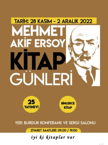 Burdur Mehmet Akif Ersoy Kitap Günleri başlıyor. burdur kültürde öncü olmaya devam ediyor. Burdur Belediyesi Konferans ve Sergi Salonu’nda 30 yayınevinin katılımıyla kitap fuarı düzenleniyor. Tarihçi Yazar Bekir Manav’ın organizatörlüğünde, kitap fuarında çocuklar için ayrıca kukla gösterisi etkinliği de düzenlenecek. Kitap fuarını Milli Eğitim Müdürlüğü’ne bağlı okullar ve öğrenciler de ziyaret edecekler.