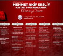 Hafta kapsamında 22 Aralık’ta Mehmet Akif Ersoy Sosyal Bilim ve Sanat Ödülleri Töreni düzenlenirken, aynı gün akşam saatlerinde Akif’ten Hakkın Sesleri Konseri sanatseverlerle buluşacak.