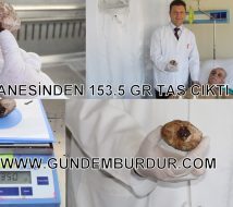 BURDUR’da, böbrek ağrısı ve idrar yapamama şikayetiyle doktora giden Yakup Kaplan’ın (62) mesanesinden 153.5 gram ağırlığında taş çıktı. Burdur’un Kemer ilçesi Kayı köyünde oturan Yakup Kaplan, idrar yapamama ve böbrek ağrısı şikayetiyle Burdur Devlet Hastanesi’ne başvurdu. Üroloji Uzmanı Dr. Ümit Gümüştaş, yaptığı muayene ve incelemelerde, hastanın mesanesinde taş olduğunu belirledi. Yaklaşık yarım saat süren açık ameliyatla Kaplan’ın mesanesinden 8×5 santim büyüklüğünde, 153.5 gram taş çıkarıldı. Dr. Gümüştaş, 26 yıllık meslek hayatının son 18 yılında, bu büyüklükte bir taşla karşılaşmadığını söyledi. Gümüştaş, Hastamız, bize idrar yapamama ve laboratuvar tahlillerinde böbrek yetmezliği bulgularıyla geldi. Tetkiklerimizde, mesanesinde son yıllarda görmediğimiz boyutta büyük bir taş gördük. Böbrekteki sıkıntının mesanedeki bu taşa bağlı olduğunu düşündük. Açık ameliyatla 150 gramın üzerindeki 8×5 santim büyüklüğündeki taşı aldık dedi. Ameliyat sonrası, hastanın genel durumunun iyi olduğunu anlatan Dr. Gümüştaş, Böbrek değerlerinde düzelme var. Ürede düşme var. Hastamızı rahatsızlığından kurtaracağımıza inanıyorum. Bu taş, alınmasaydı böbrek fonksiyonları tamamen bozulacak ve kronik böbrek yetmezliğine yol açacaktı. Bunun sonucunda da hasta, diyaliz makinesine mahkum olacaktı. Hastamızın genel durumu iyi, hiçbir sorunu yok. 2-3 gün sonra taburcu edeceğiz diye konuştu. Böbreklerinde çok ağrı olduğunu ve ameliyat olunca sağlığına kavuştuğunu belirten Yakup Kaplan ise Taş olduğunu bilmiyordum. ‘Prostat var’ diye düşünüyordum. Kemer’de doktora gittim. İlaç yazdı, ayrıca ‘Sen, üroloji doktoruna görün’ dedi. Aldırış etmedik. 6-7 senedir ağrı çekiyordum. Ameliyat olunca, sağlığıma kavuştum. Doktoruma çok teşekkür ediyorum dedi.