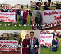 Mehmet Akif Ersoy Üniversitesi Beden Eğitimi ve Spor Yüksekokulunu bu yıl bitiren 23 yaşındaki Mustafa Sağdıç Gazi Atatürk Stadı’nda düzenlenen mezuniyet töreninin kortej geçişine üzerinde ‘Bizim çocuklar sana yenge demek istiyor, Raşidem benimle evlenir misin’ yazılı pankartla katıldı.