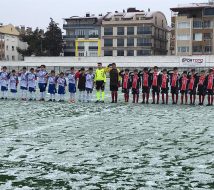 U13 Kategorisinde oynanan Maküspor-Bucak Gençlikspor karşılaşması öncesinde minik futbolcular asker selamı