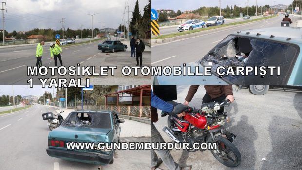 BURDUR’da motosikletle otomobilin çarpıştığı kazada bir kişi yaralandı.
