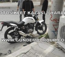 Burdur merkez Fevzi Çakmak Mahallesi 23074 sokakta meydana gelen kazada A.İ. (19) yönetimindeki motosiklet, sürücünün direksiyon hakimiyetini kaybetmesi sonucu yan yatarak sürüklendi. Motosiklet aydınlatma direğine çarparak durabildi.