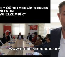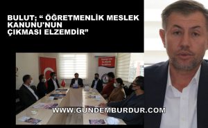 EĞİTİMCİLER Birliği (Eğitim Bir Sen) Burdur Şube Başkanı Murat Bulut, Öğretmenlik Meslek Kanunu’nun çıakrılmasının elzem olduğunu söyledi.