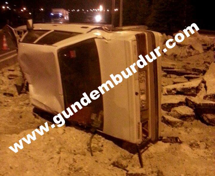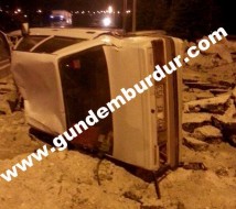 Mehmet Ali Üzümcü idaresindeki 32 KF 953 Plakalı Renault marka araç Burdur’dan Isparta istikametine seyir halinde iken aniden önüne çıkan motosiklete çarpmamak için direksiyonu kırınca takla atarak orta refüje çıktı. Kazada araç sürücüsü Mehmet Ali Üzümcü hafif yaralandı. Yaralı sürücü Burdur Devlet Hastanesi’ne kaldırıldı.
