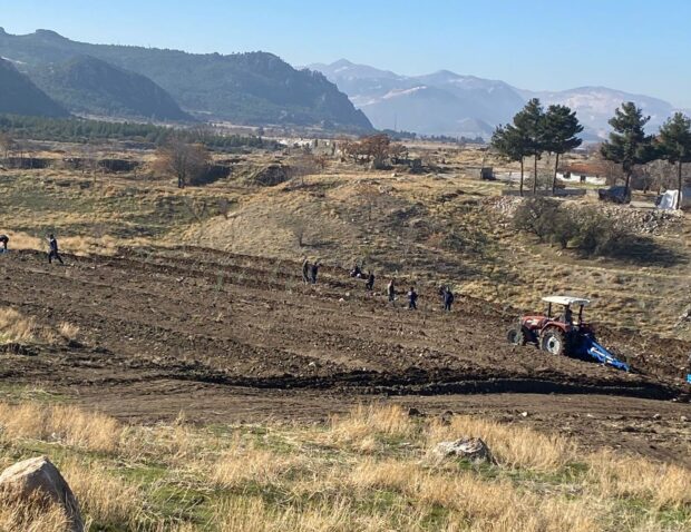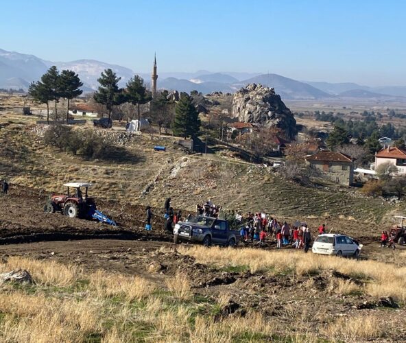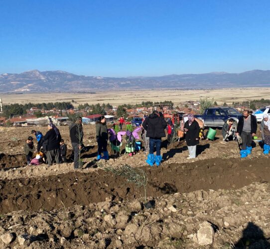 mevkiinde 5 dönüm arazide 500 zeytin, çam ve ıhlamur fidanını toprakla