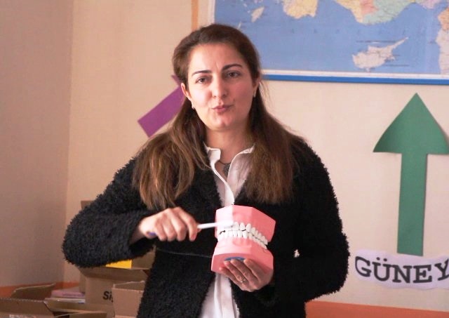 Sütlü “Çocuklarımıza diş taraması yapıyoruz. Doğru diş fırçalama tekniklerini öğretiyoruz. Diş macunu ve diş fırçası hediye ediyoruz. Diş sağlığının gelişimi için doğru meyve elma dağıttık. Bugüne kadar il genelinde 10 bin öğrencimize ulaştık. Diş çürüdükten sonra telafisi yok. Kısa süre koruyucu işlemler yapabiliyoruz ama sonuçta diş kaybediliyor o yüzden çürümesini engellemek amacımız. Ama esas önemli görev ailelerimize düşüyor. Çocuklarımızın düzenli ve doğru diş fırçaladığını kontrol etmemiz gerekiyor. Sağlıklı gülen çocuklar için sağlıklı dişler gerekiyor.” ifadelerini kullandı.