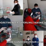 Burdur’da Alpaslan Ali Can Bilim ve Sanat Merkezi öğretmenleri evlerinde koronavirüs (Covid-19) ile mücadele eden sağlık personelinin ihtiyacı olan yüz siperlikli maske üretimi yapıyor. İlk etapta üretilen 135 maske İl Sağlık Müdürlüğü’ne teslim edildi.