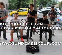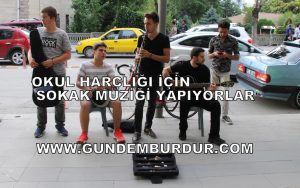 Burdur’da 15 Temmuz Şehitler Anadolu Lisesi ve USO Anadolu Lisesi Öğrencileri Hasan Hüseyin Aygün, Yasin İpek ve Ruhican Bozcu okul harçlığı için haftanın üç günü Gazi Caddesi’nde sokak müziği yapıyorlar.